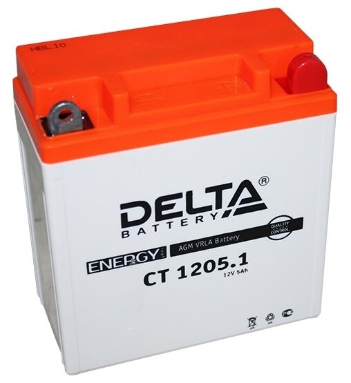 Аккумулятор для мотоцикла и скутера Delta CT1205 12V 5 А/ч 80 А обр. пол. залит/заряжен YTX5L-BS, YT5L-BS (114х69х109) AGM VRLA 1 550 ₽