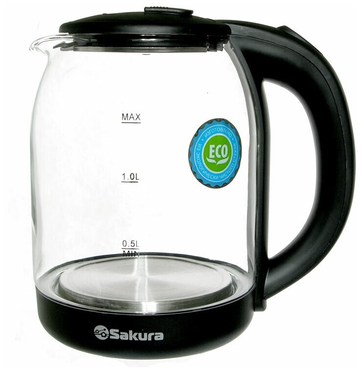 Чайник электрический Sakura SA-2709SPBK, стекло, 1.8 л, 1800 Вт, чёрный