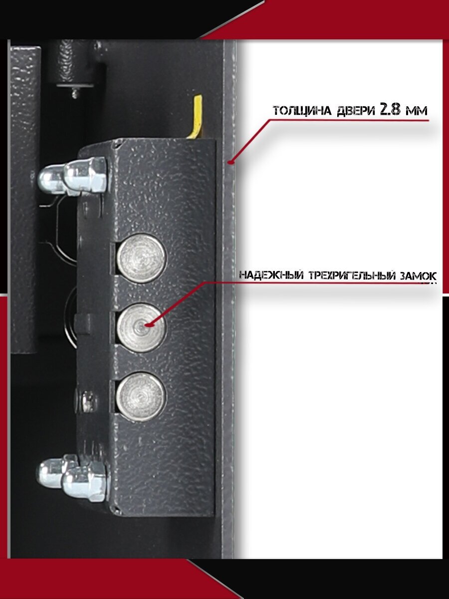 Цельностальной сейф, 3 слоя дополнительного пространства внутри, прочный и долговечный.