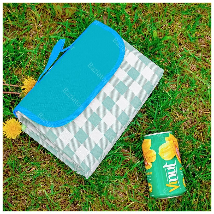 10 цен на Коврик сумка для пикника и пляжа складной 200х150 см водонепроницаемый непромокаемый влагостойкий для гальки; сумка лежак для пляжа; бирюзовая клетка