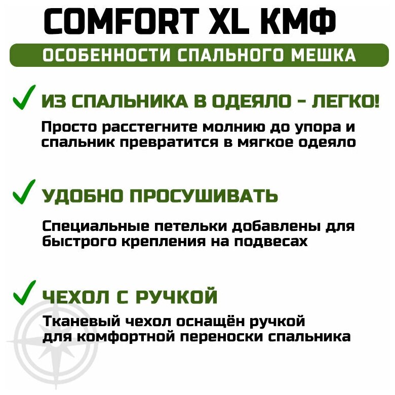 Спальный мешок одеяло Prival Camp Comfort XL КМФ пиксель, t extr -2 °С, 215х90 см информация: