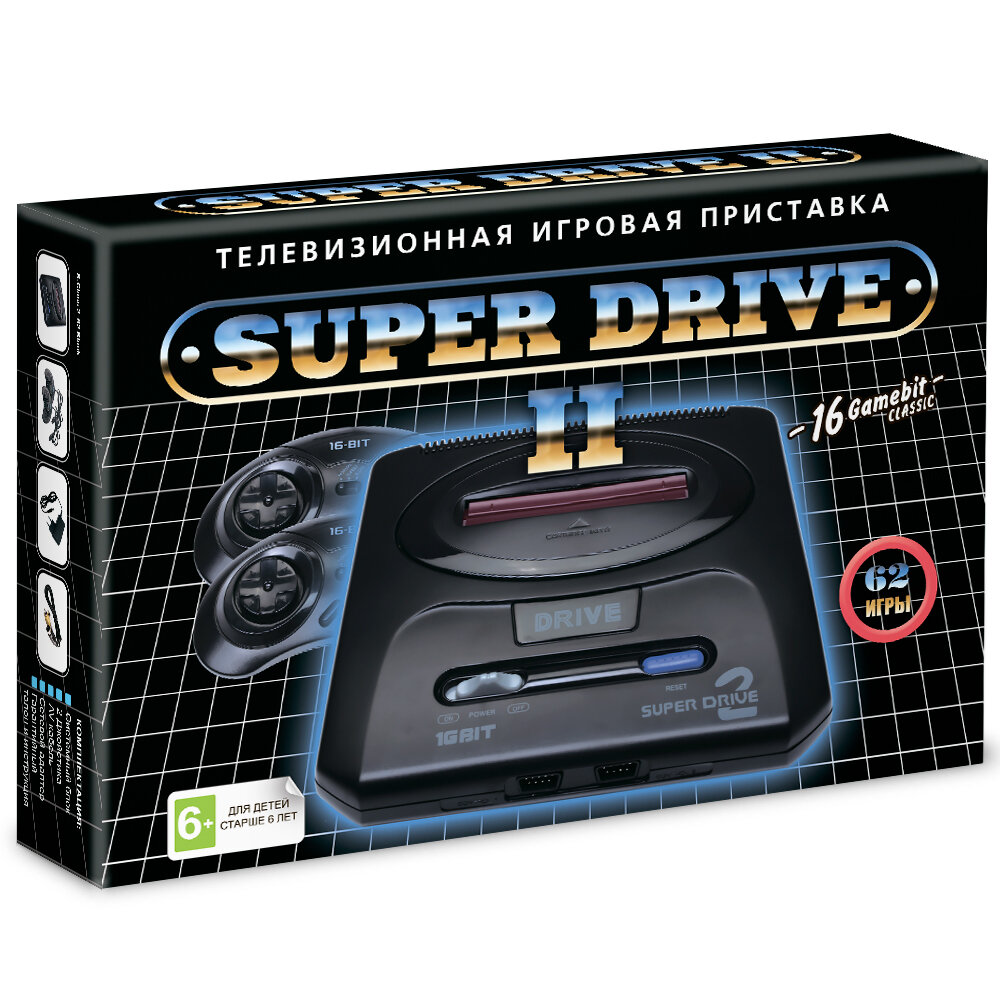 Игровая приставка 16 bit Super Drive 2 Classic (62 в 1) + 62 встроенных игр + 2 геймпада (Черная) информация: