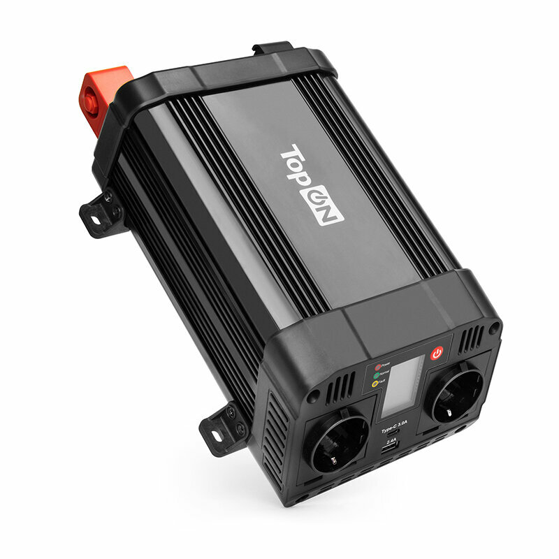 10 цен на Автомобильный инвертор TopON TOP-PI1202 1200W 2 розетки, Type-C, USB, LCD экран, пиковая мощность 2400W черный