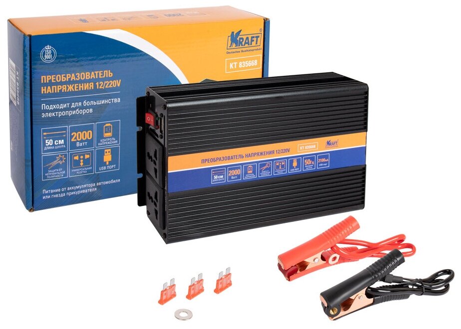 Автомобильный инвертор KRAFT 12/220 В, 2000 Вт KT 835668