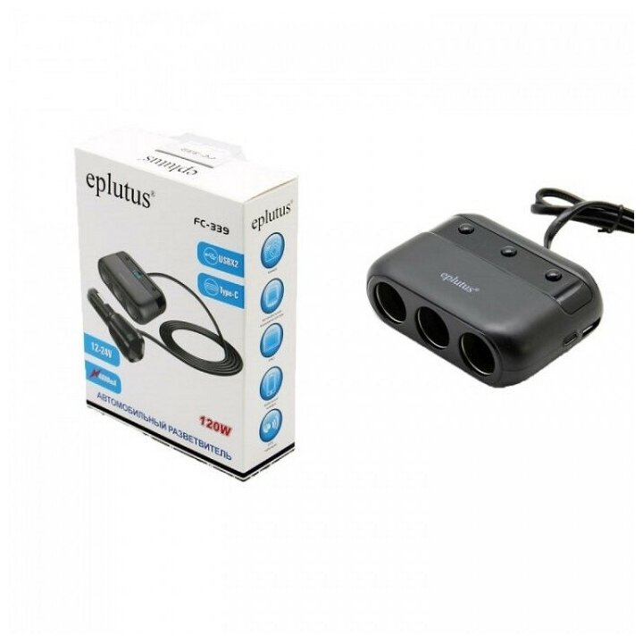 Автомобильный разветвитель прикуривателя Eplutus FC-339/ 3 розетки,2 USB и Type-C/12V-24V