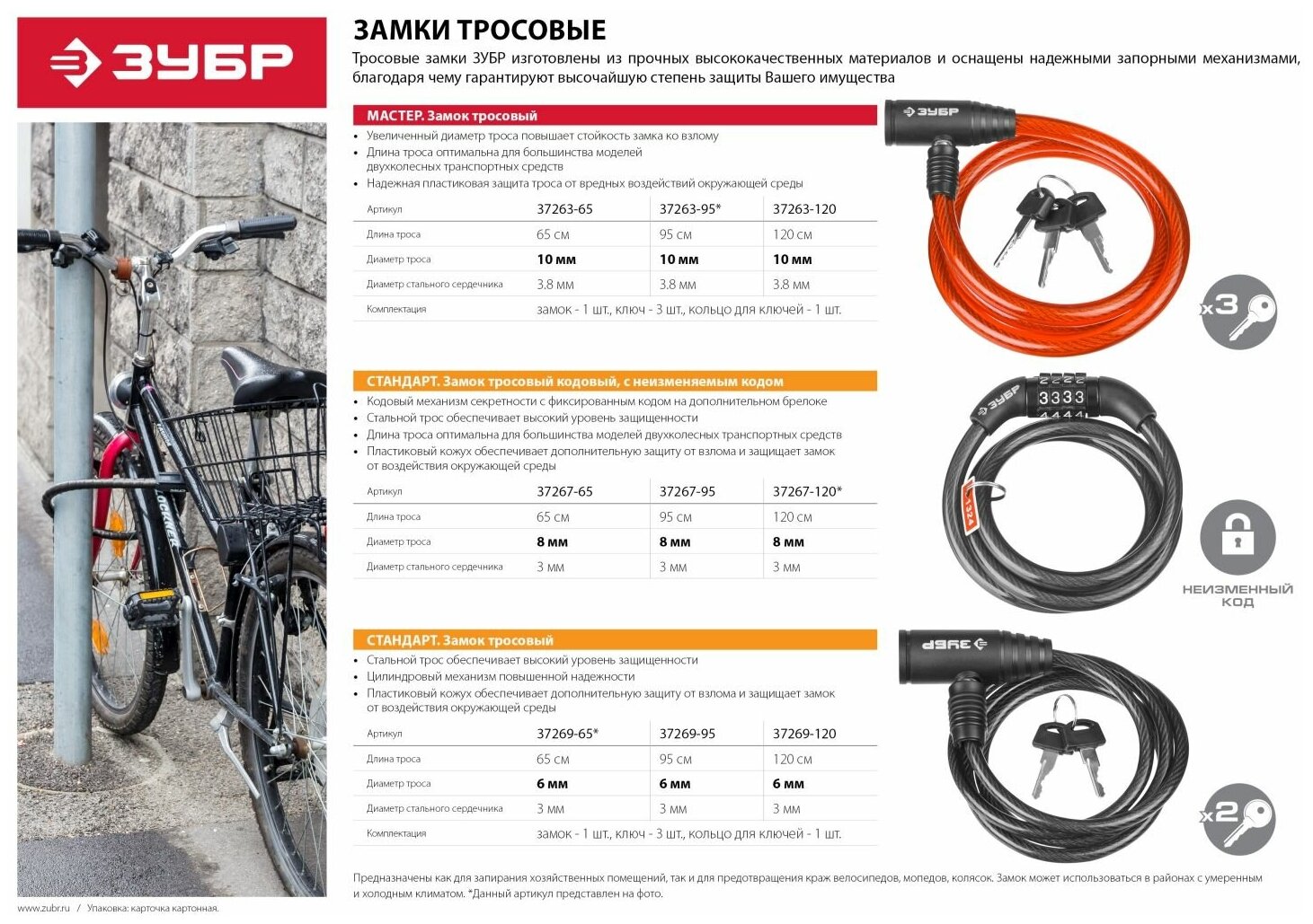 Велозамок тросовый ЗУБР Стандарт 37269-65