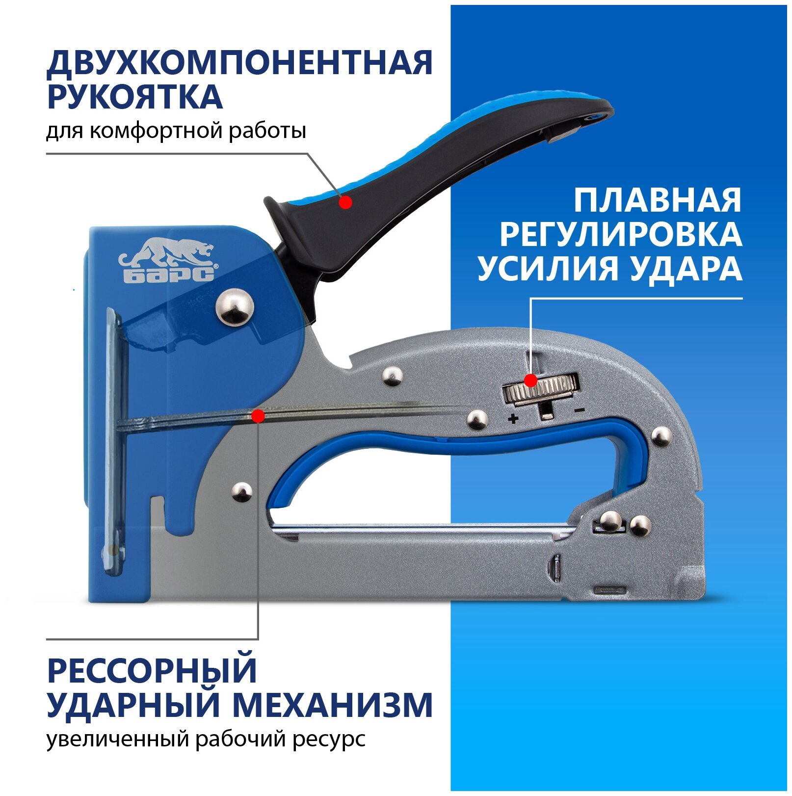 Металлический степлер барс регулировка удара, двухкомпонентная рукоятка 40003