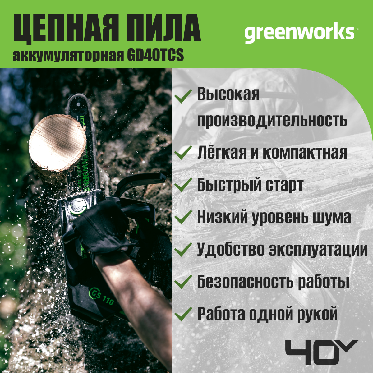 GREENWORKS Цепная пила аккумуляторная GD40TCS, 11 652 ₽
