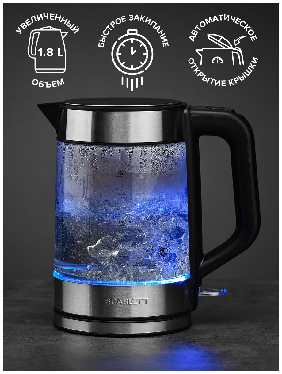 Чайник SCARLETT SC-EK27G101, 1,8 л, 2200 Вт, закрытый нагревательный элемент, стекло, черный