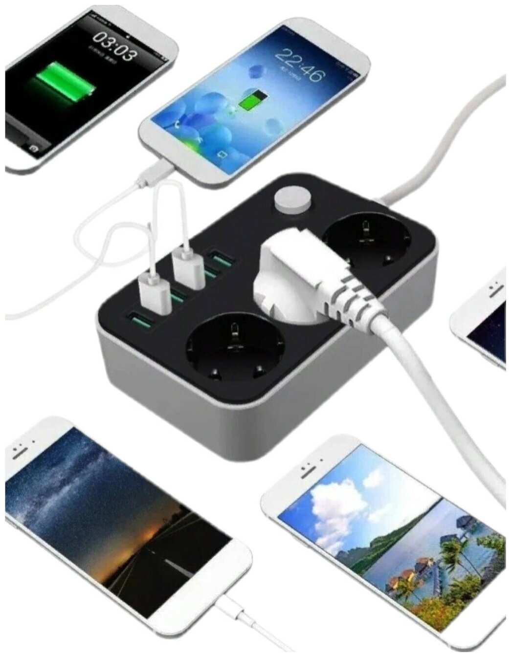 Отзывы на Удлинитель- фильтр сетевой/ 6 USB + 3 розетки CX-U613 / USB 4.1A быстрая зарядка / Стабилизатор /Защита от перенапряжения