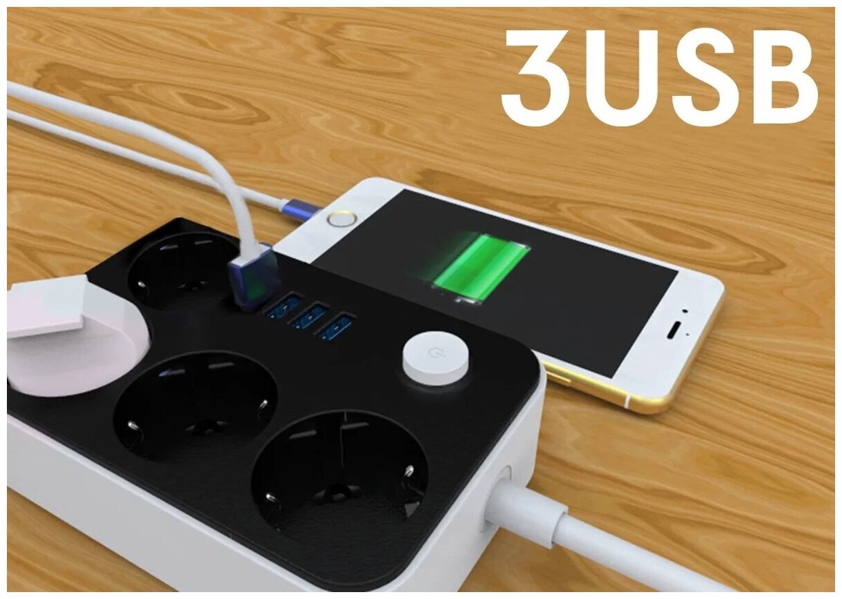 10 цен на Сетевой фильтр с USB 4 розетки и 3 USB CX-U314 1.8м