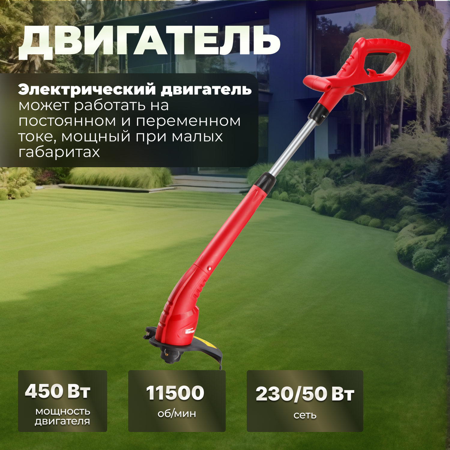 | Подробная комплектация | электрический триммер; косильная головка; защитный кожух; паспорт; упаковка |