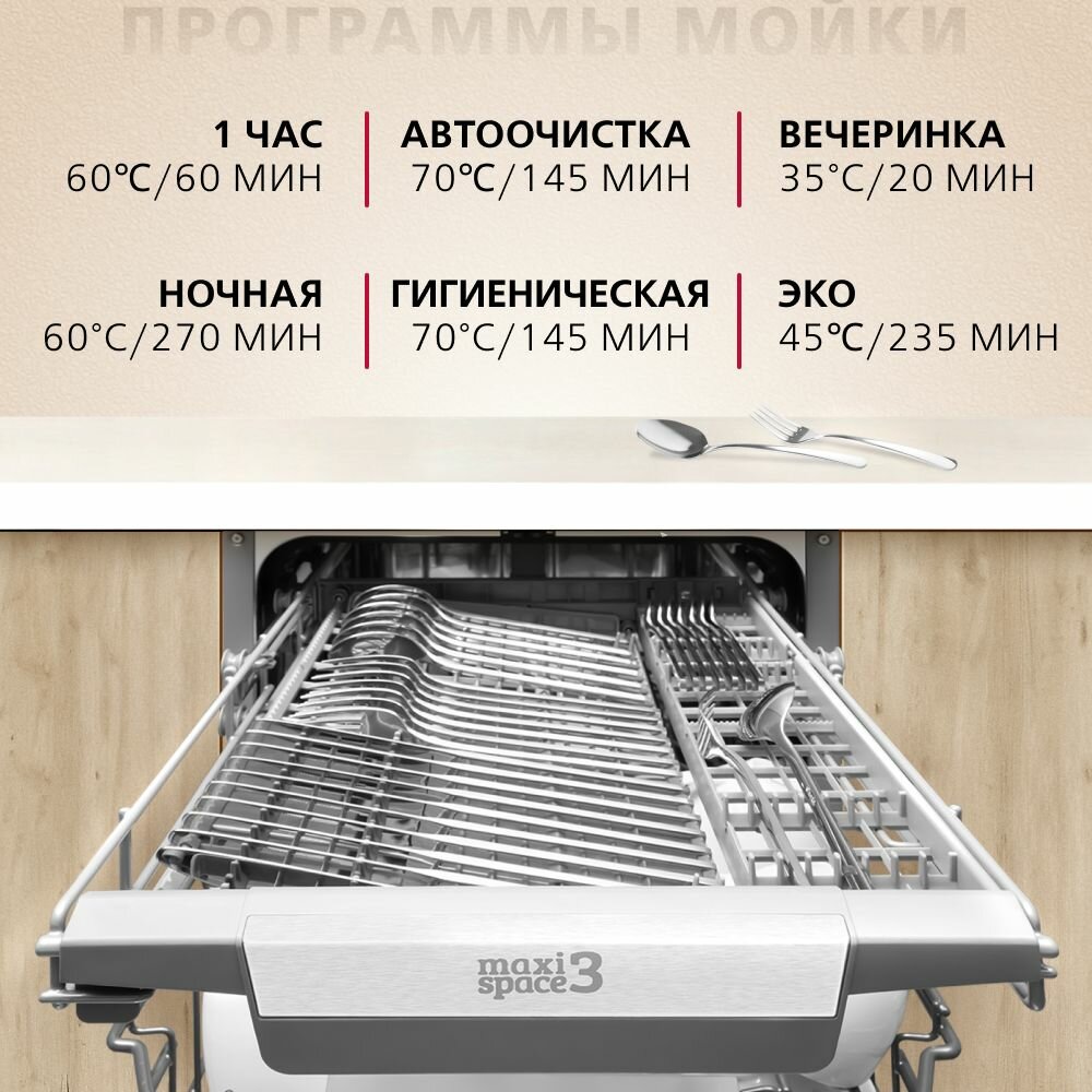 Встраиваемая посудомоечная машина Hansa ZIM426EQ, 45см, компактная, с защитой от протечек, 6 программ, 3 корзины, режим экстра сушки и половинной загрузки, функция пара и отсрочка старта