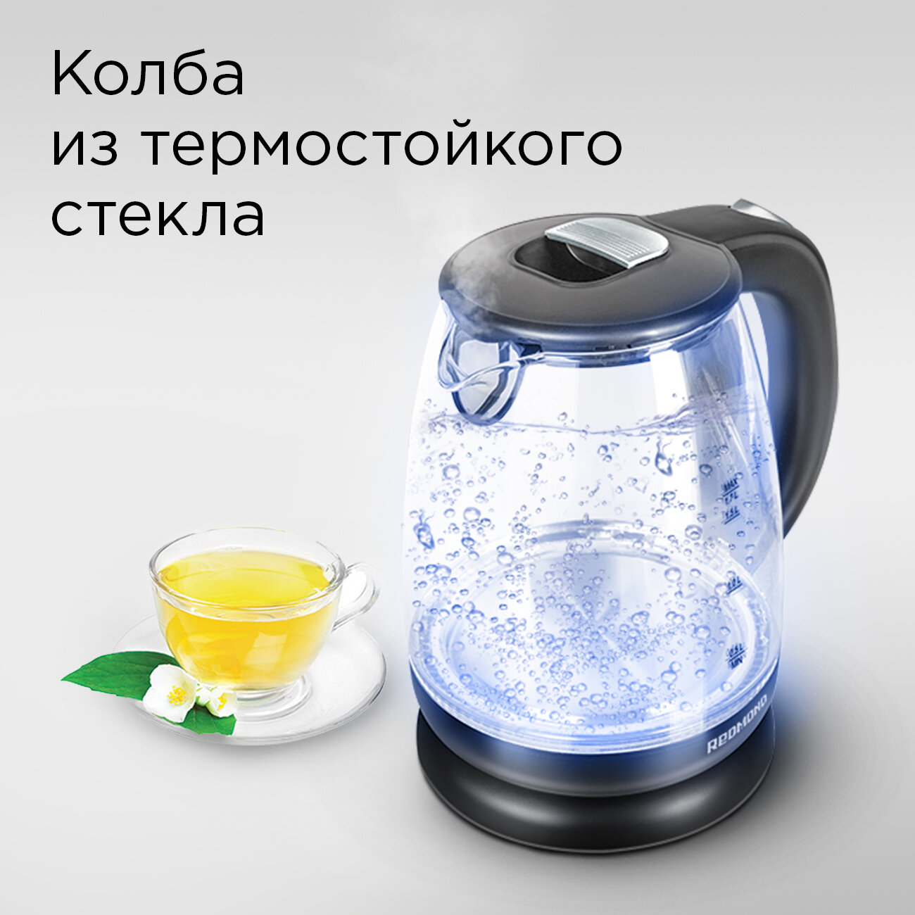 Электрический чайник со стеклянной колбой РЕДМОНД KG255, 1,5 л, LED-подсветка, автоотключение, поворот 360°, черный