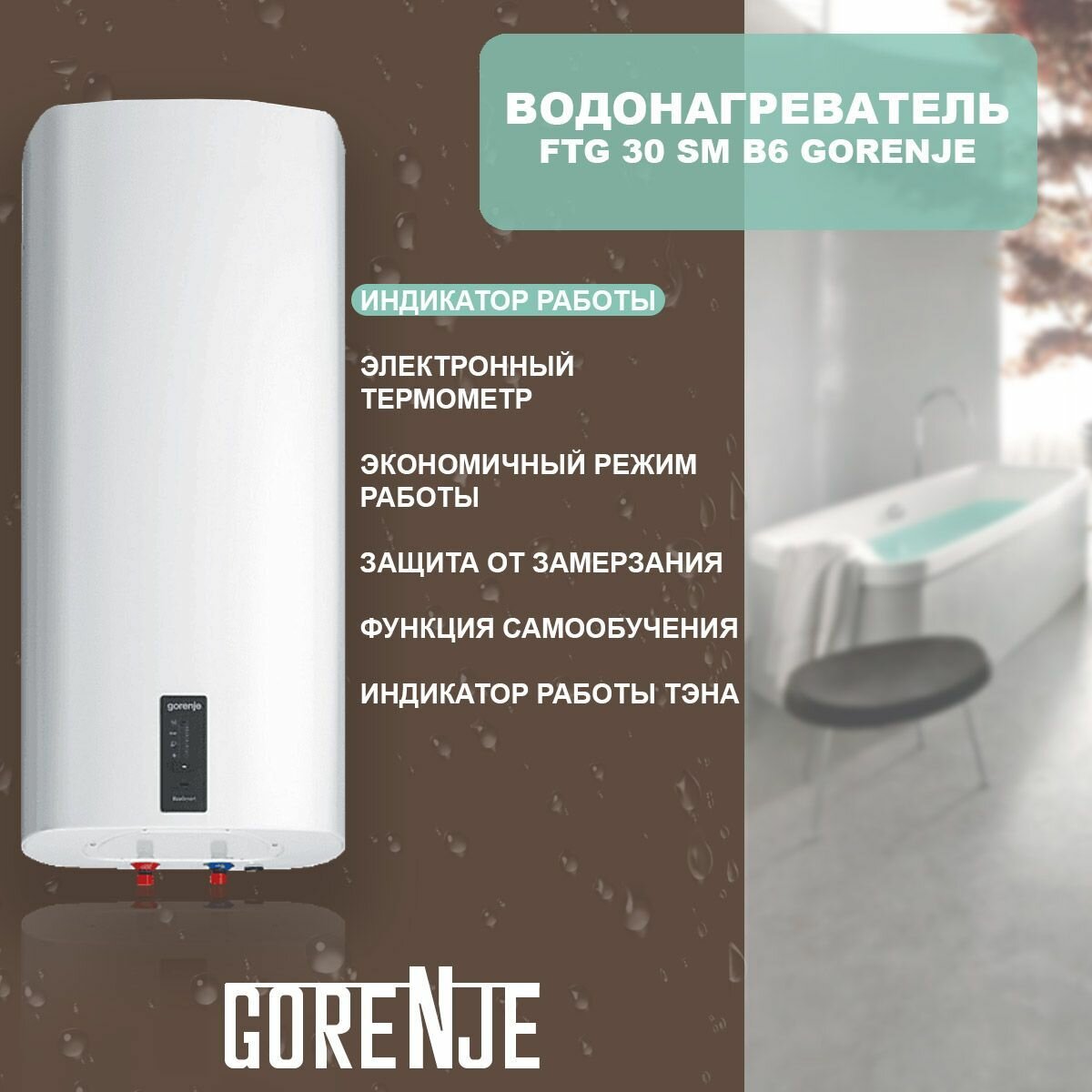 Водонагреватель Gorenje FTG30SMB6, накопительный, 2кВт, 30л информация: