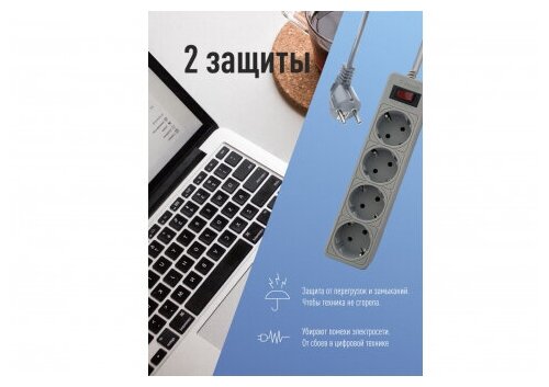 Сетевой фильтр Космос Электро Космос 4х1.5м с заземл. 10А IP20 2.2кВт с пред. 3х0.75 индик. сети, серый, FKsm1.5m-4g(G)