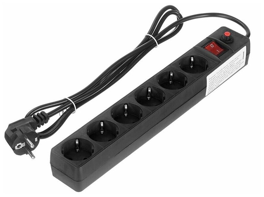 Сетевой фильтр UNIVersal (967U-4001) с заземлением 1,8 м 10 А 230 В ПВС 3х0,75 мм2 6 розеток 2,2 кВт IP20 с выключателем и защитными шторками черный информация: