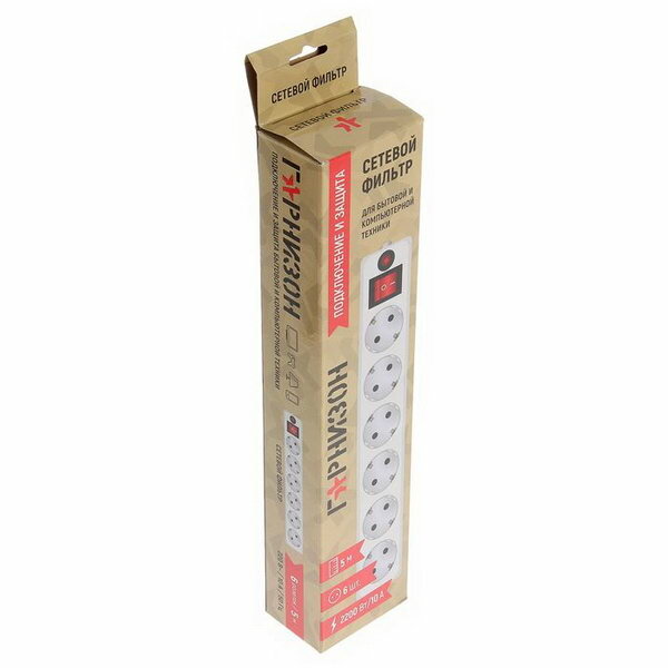 10 цен на Сетевой фильтр 6 розеток, 5 м, 10 А, 2200 Вт, белый