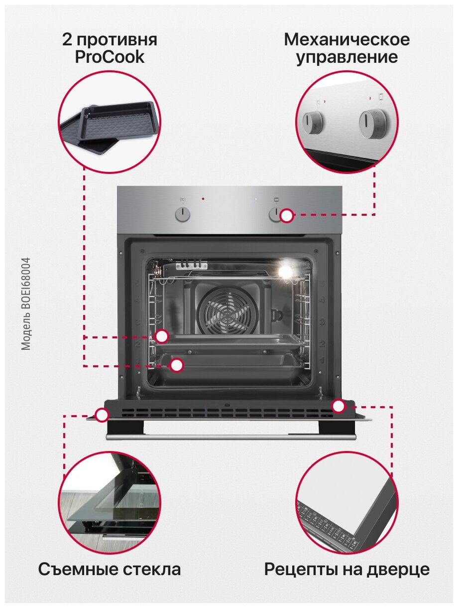 Духовой шкаф встраиваемый LEX EDM 077 C IV, 60 см, с конвекцией, механические ручки, объем 60 л, аналоговый таймер, телескопические направляющие.