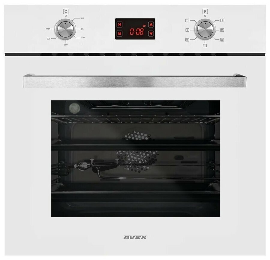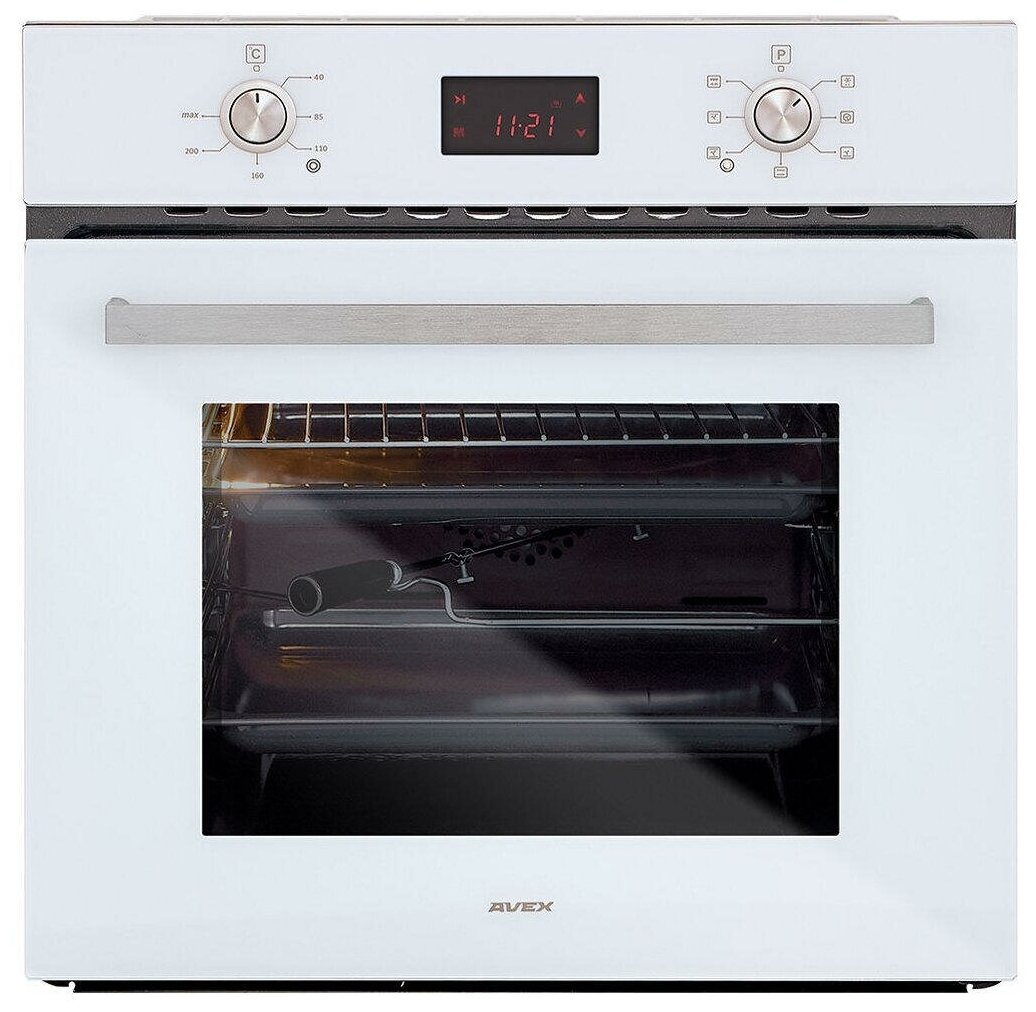 10 цен на Встраиваемый духовой шкаф AVEX HM 6172 W, 56 л объем, конвекция, 7 режимов, гриль, электронный таймер, белое стекло