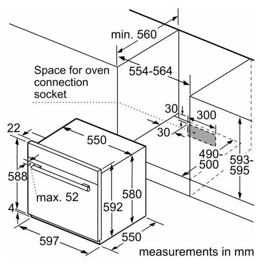 Встраиваемый газовый духовой шкаф Bosch HGL10G050M Series 4, 592 x 597 x 572, 60 л, 3 режима работы, гриль, частичное катал.покрытие, электроподжиг информация: