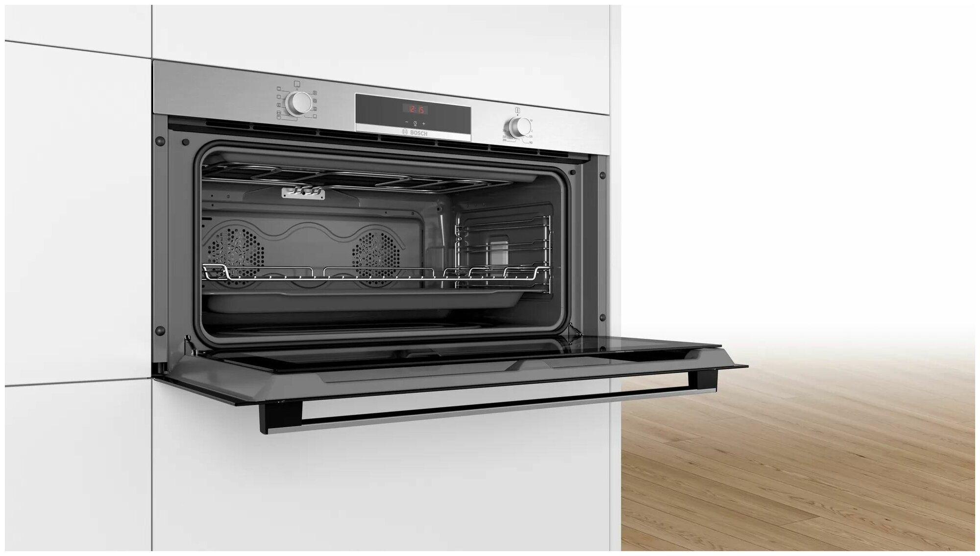 10 цен на Встраиваемый электрический духовой шкаф Bosch VBC514CR0 Series 4, 475 x 896 x 554, 85 л, 3100 Вт, 9 режимов, гриль, быстрый разогрев, защита от детей