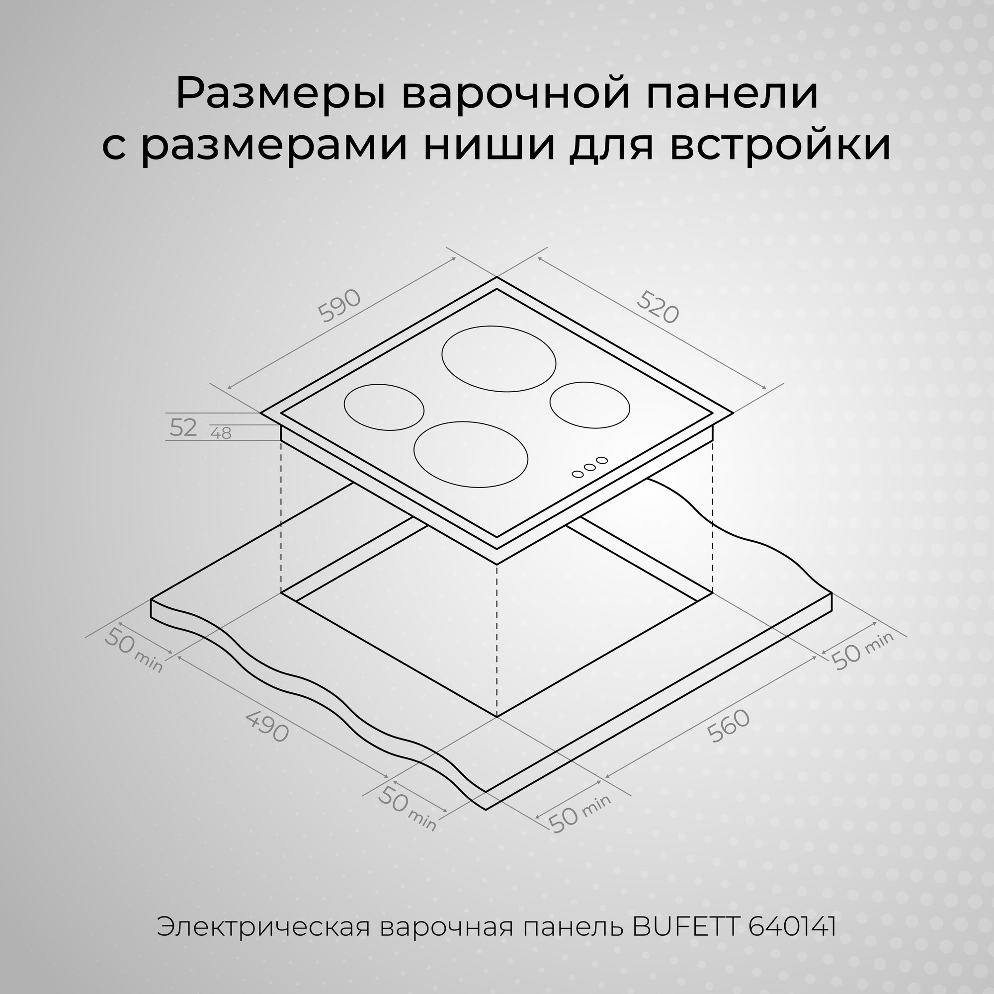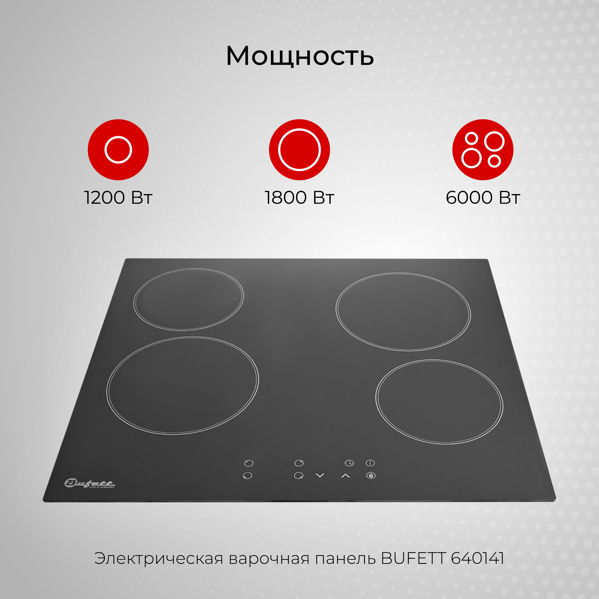 Керамическая электрическая варочная панель BUFETT, 4 конфорки, 6000 Ватт, 640141 информация: