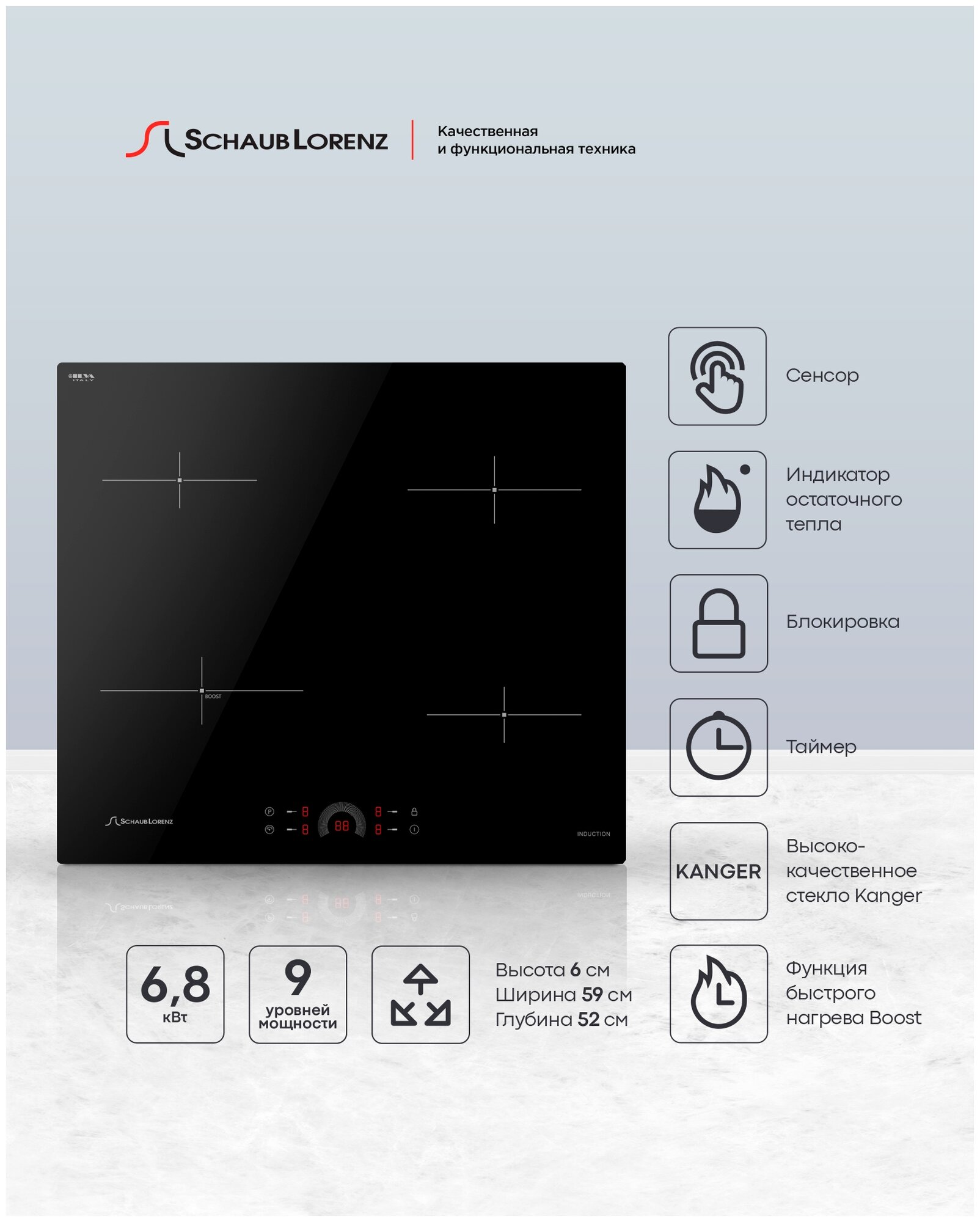 Индукционная поверхность Schaub Lorenz SLK IY61H1, 60 см, управление сенсорное, черный, Китай