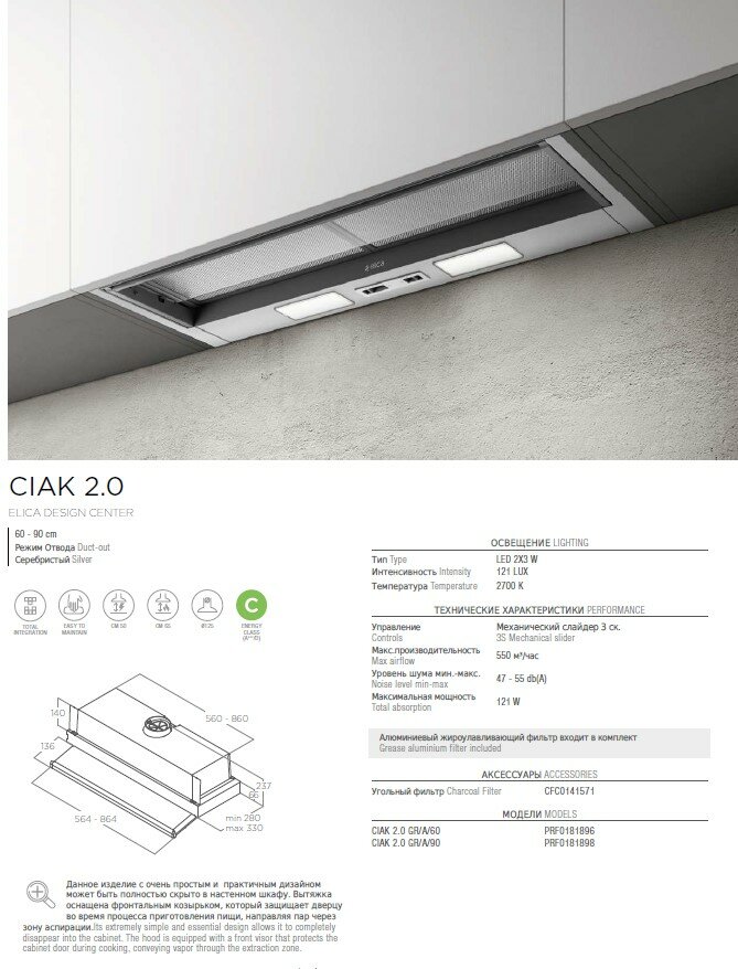 Вытяжка Elica CIAK 2.0 GR/A/90 информация: