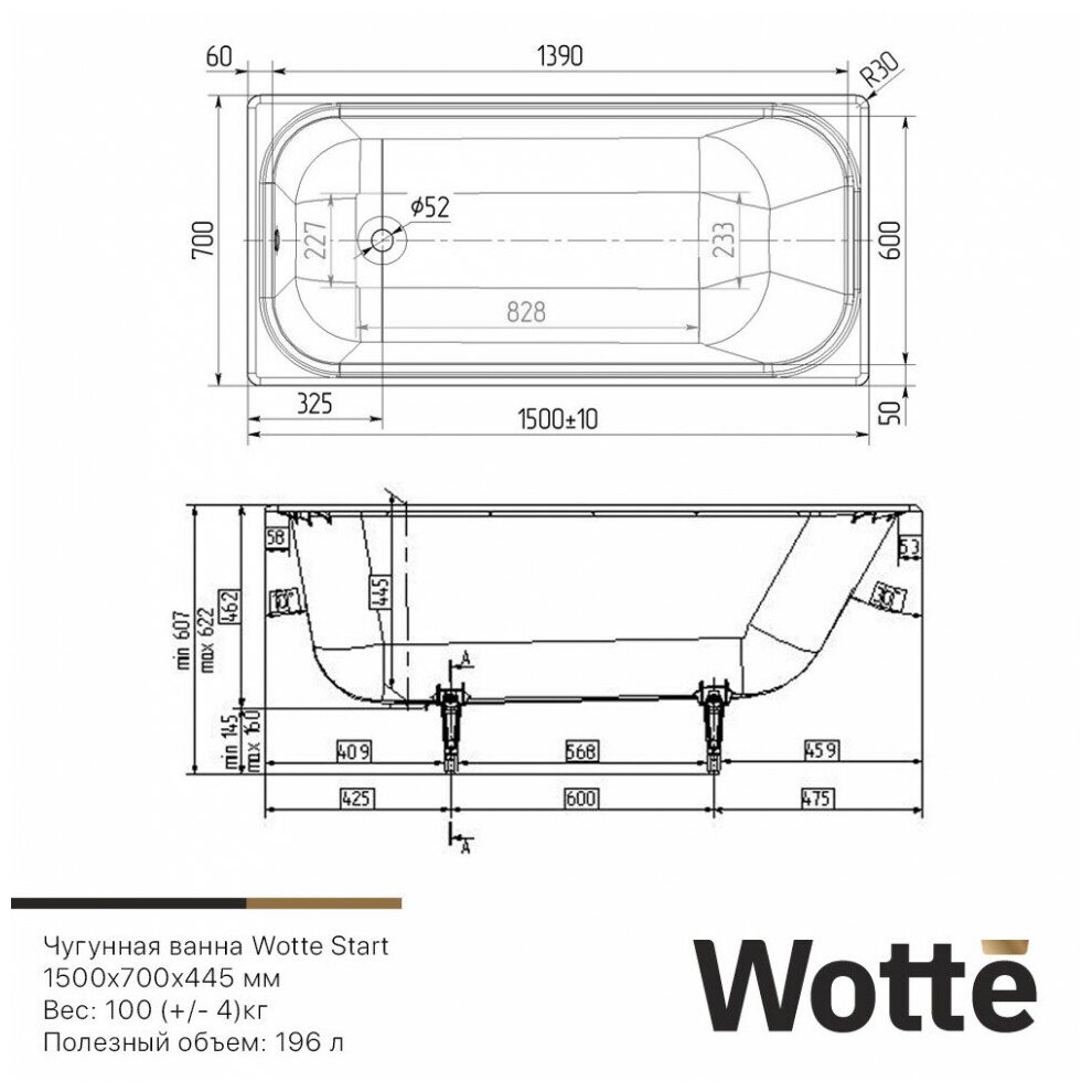 Ванна чугунная Wotte Start 150х70 с ручками информация: