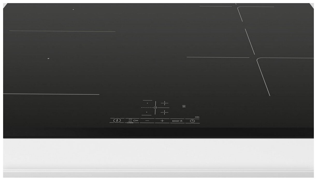 Serie 4, индукционная варочная поверхность, 60 см, стеклокерамика, черная, скошенный фронт, 4 конфорки, две конфорки слева можно объединить в CombiZone, управление TouchSelect, таймер, распознавание наличия посуды, функция PowerBoost, индикация остаточног информация: