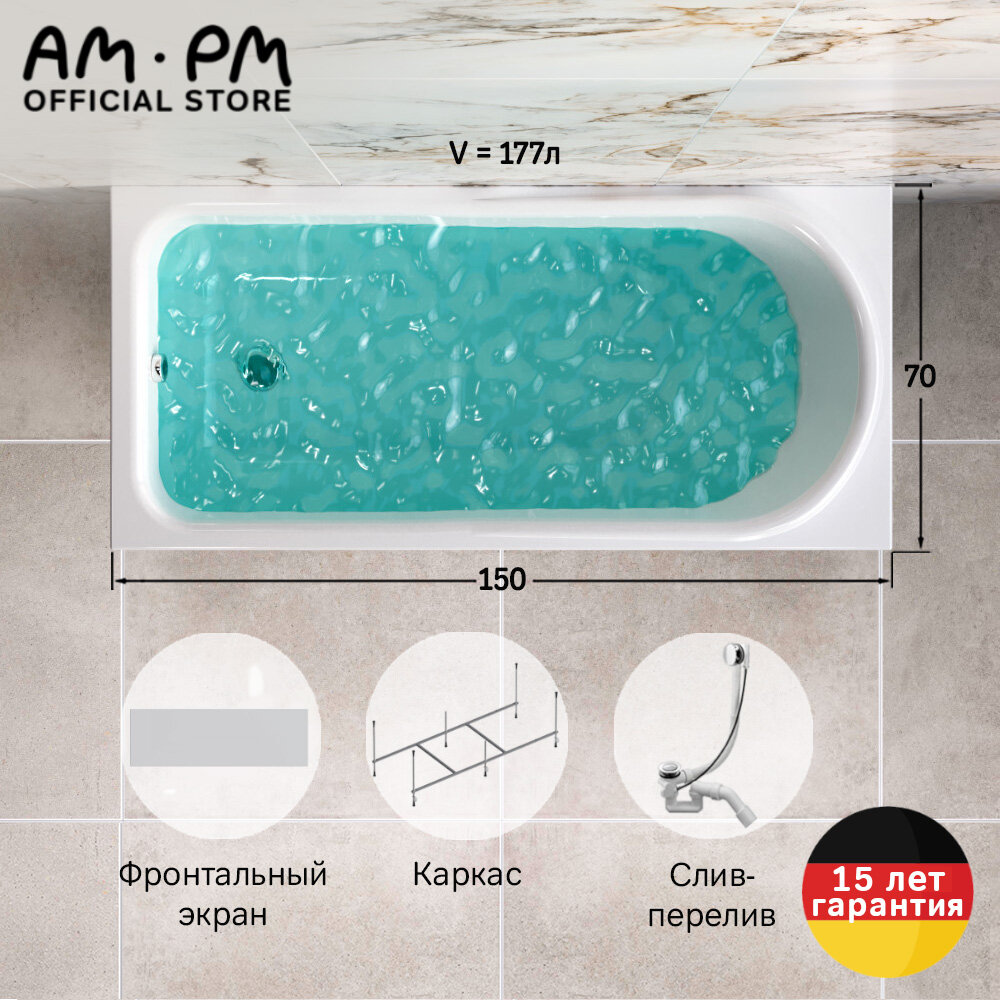 Комплект 3 в 1 ванна акриловая AM.PM Like 150x70 с каркасом, фронтальной панелью, и слив переливом информация: