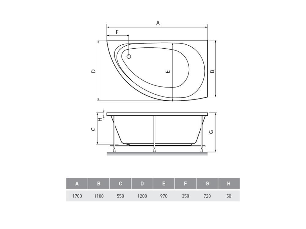 Ванна Relisan EcoPlus Ибица ППУ левосторонняя 170x120см (Гл000023027) 36 531 ₽