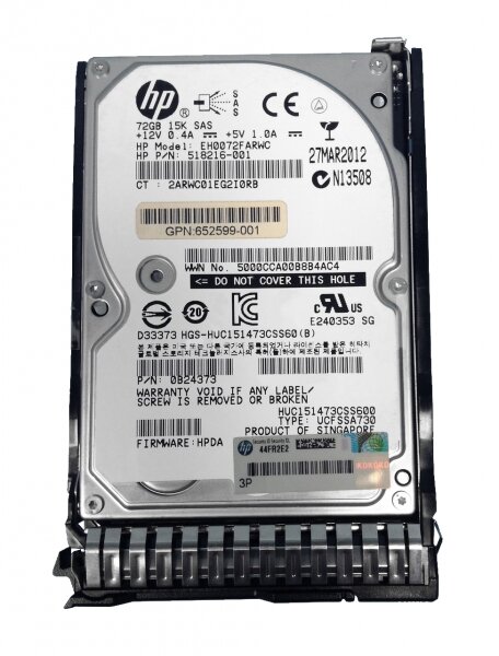 Жесткий диск HP 72GB 15K 6G 2.5 SAS DP HDD [518216-001] информация: