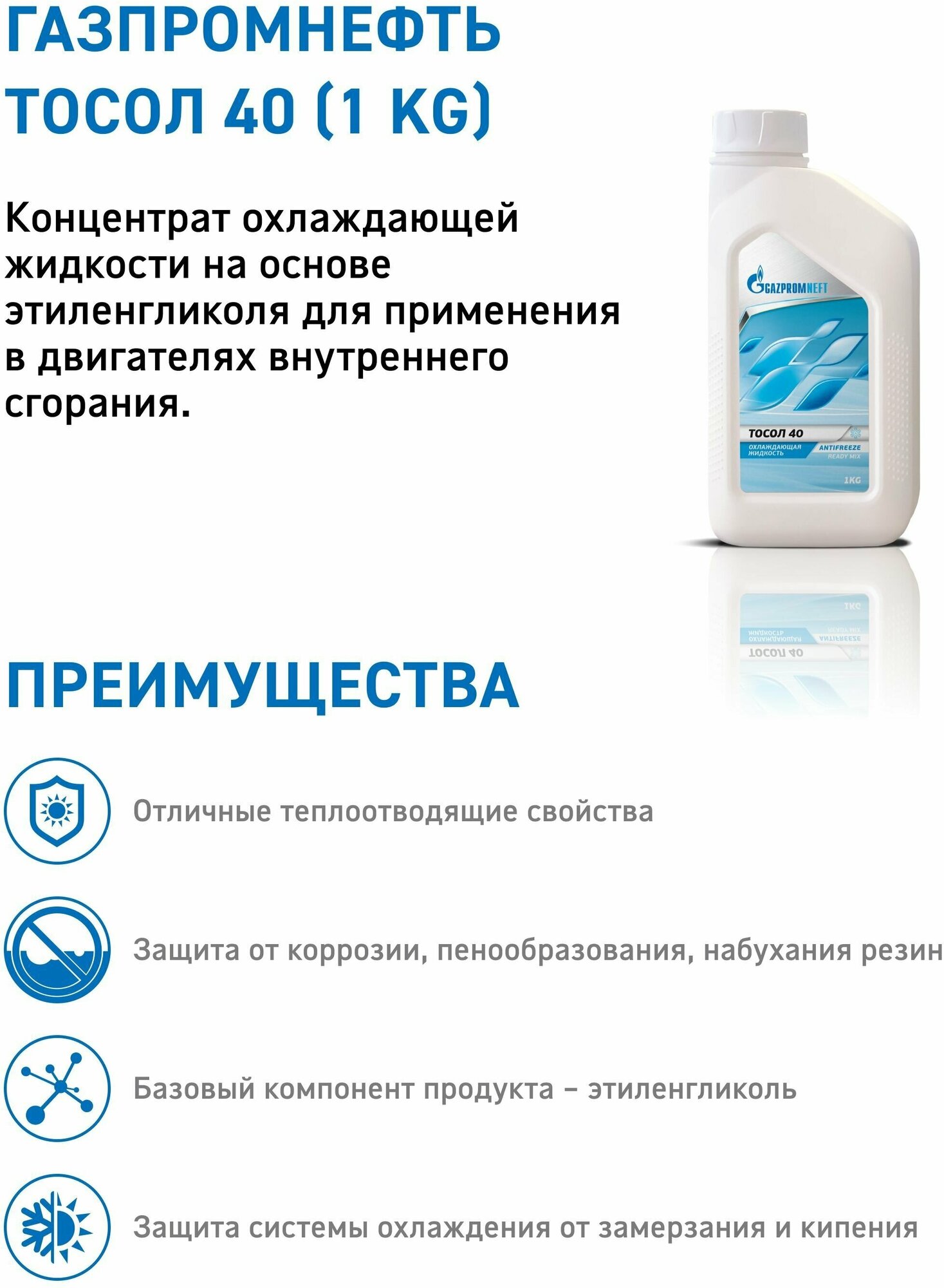 Ож газпромнефть тосол 40 1 кг, GAZPROMNEFT 2422220109 (1 шт.) 550 ₽