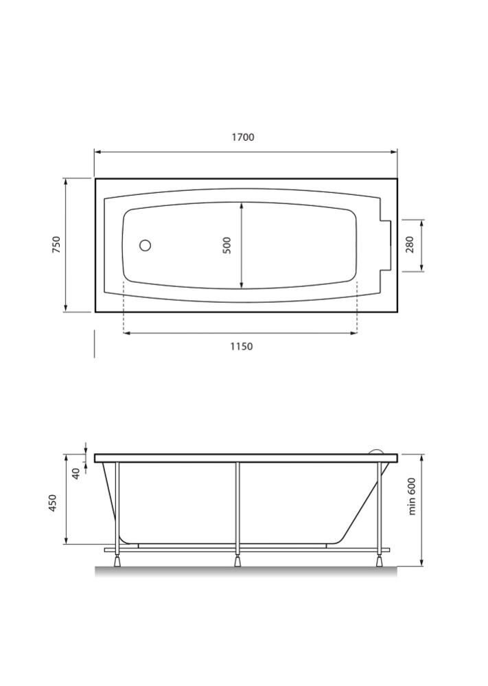 Ванна Gamma 140х70 см, акриловая, на каркасе, экран к ванне Gamma 140