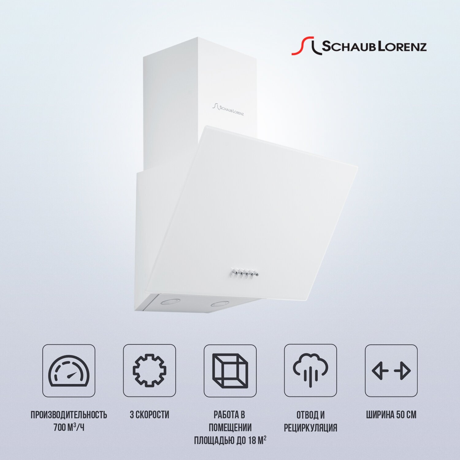 Вытяжка наклонная Schaub Lorenz SLD DL5410, 50см, белое одинарное стекло информация: