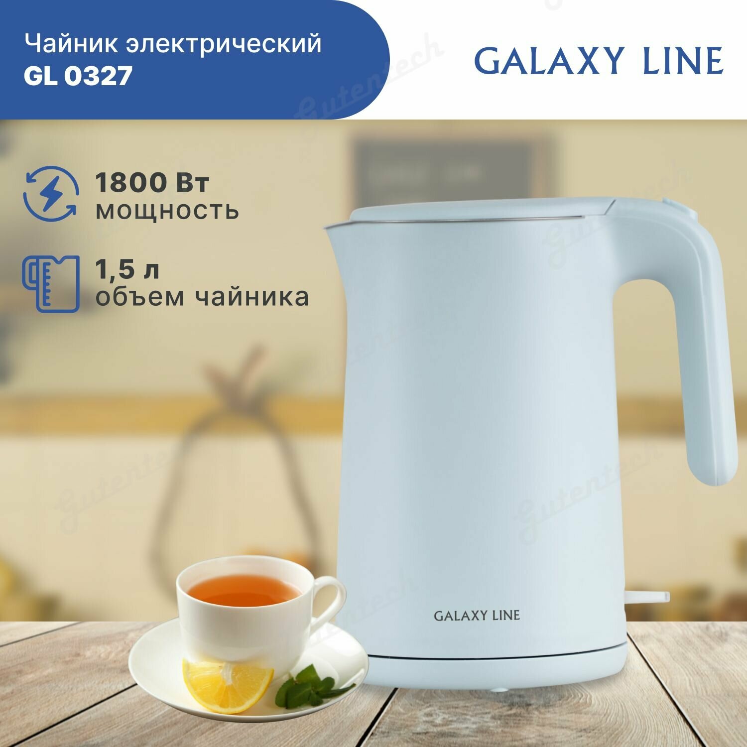 GALAXY GL 0327 Чайник электрический 1800 Вт, 1,5л, голубой информация: