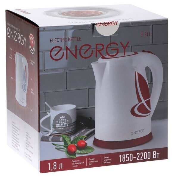 Чайник электрический Energy E-211, пластик, 1.8 л, 2200 Вт, бело-голубой Energy 9196902
