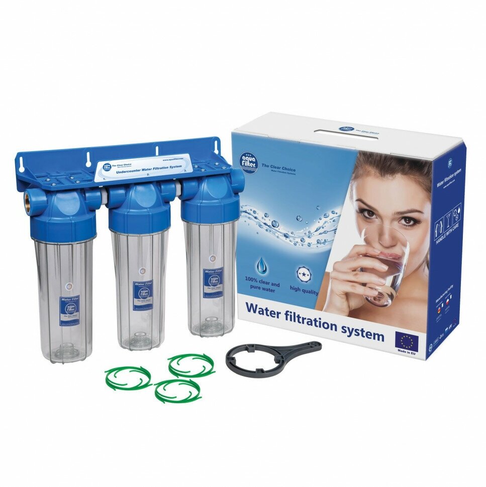 Сборка из трех прозрачных корпусов для холодной воды Aquafilter 10SL, 3/4'', FHPRCL34-B-TRIPLE, 467