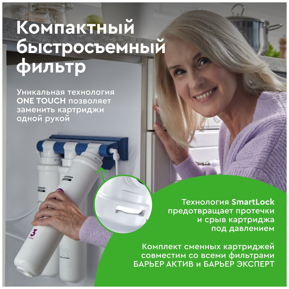 Фильтр под мойку для очистки воды трехступенчатый, быстросъемный БАРЬЕР эксперт Жесткость (без крана), защищает от накипи