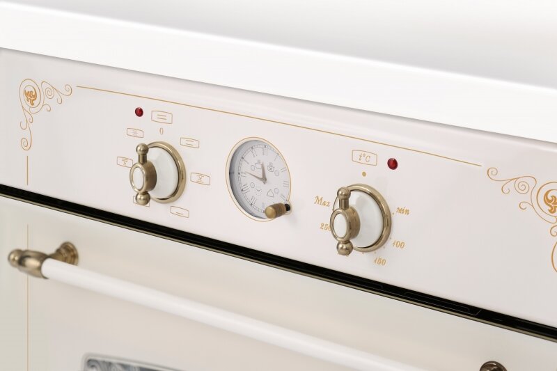 | Дополнительная информация | цвет: кремовый с рисунком "ретро"; конструкция не предусматривает очистку духовки паром; тип часов: аналоговые; вентилятор охлаждения |