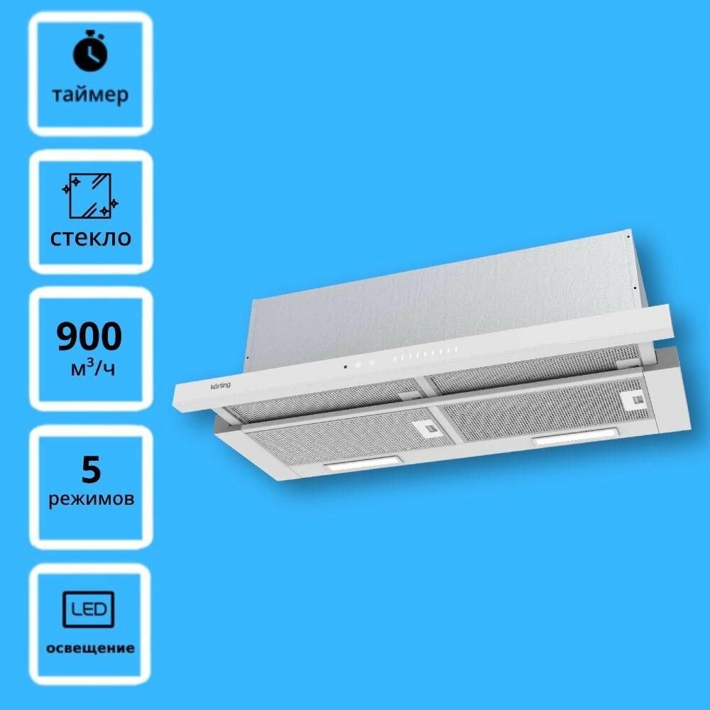 Встраиваемая вытяжка с выдвижным экраном Korting KHP 9975 GW, сенсорное управление, 90 см, белая