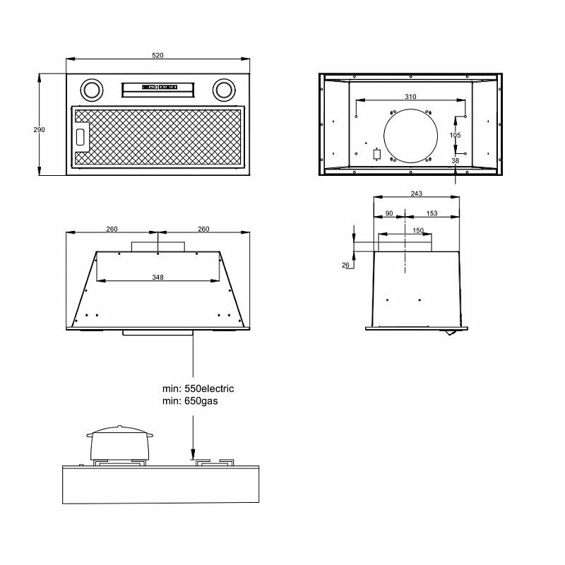 | Дополнительная информация | угольный фильтр (KIT 0278), приобретается отдельно; диаметр выходного отверстия (мм) - 150/120 |