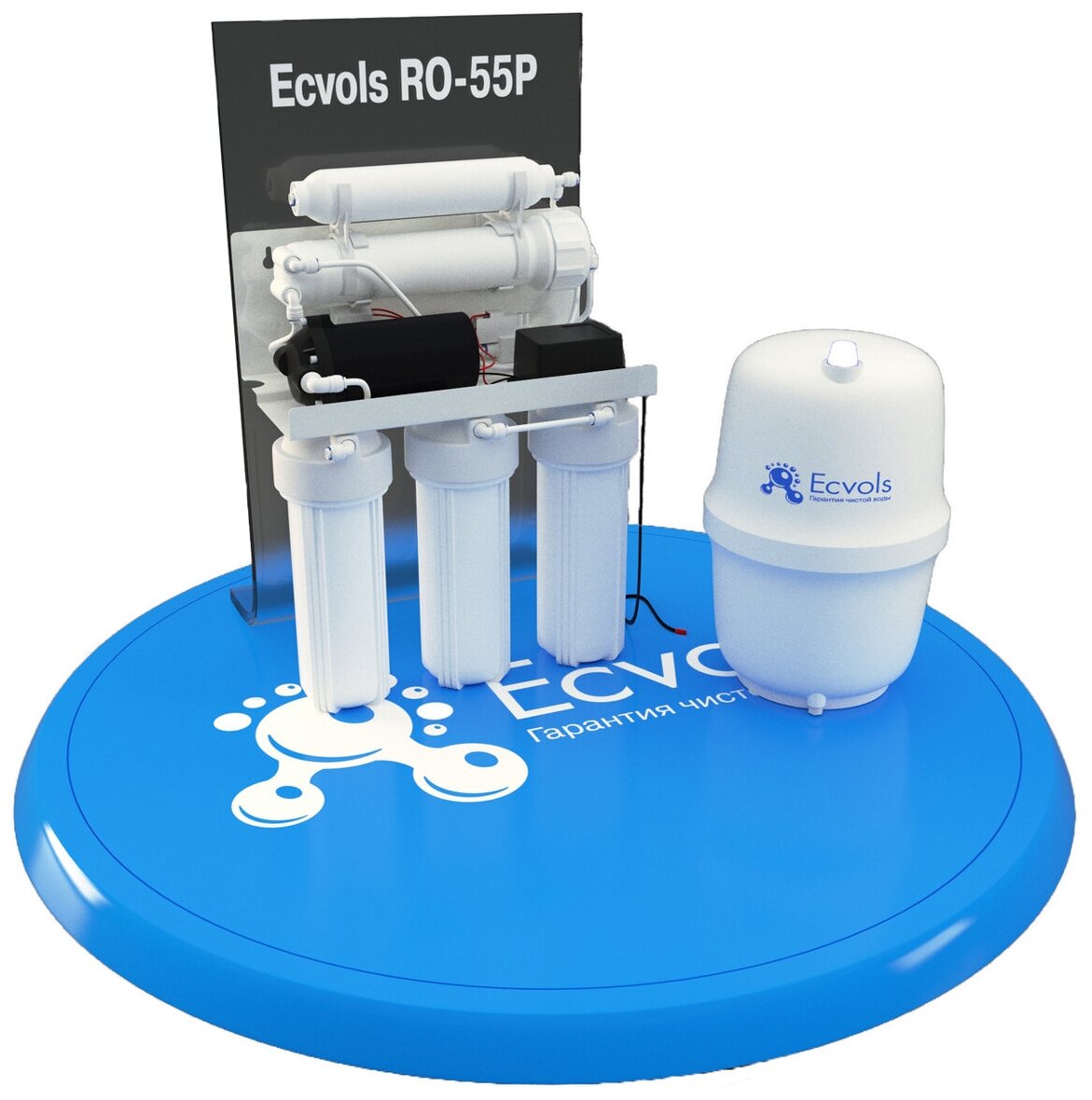 Система обратного осмоса Ecvols RO-55P, 5 ступеней, бак 10 л, очистка 99.9% информация: