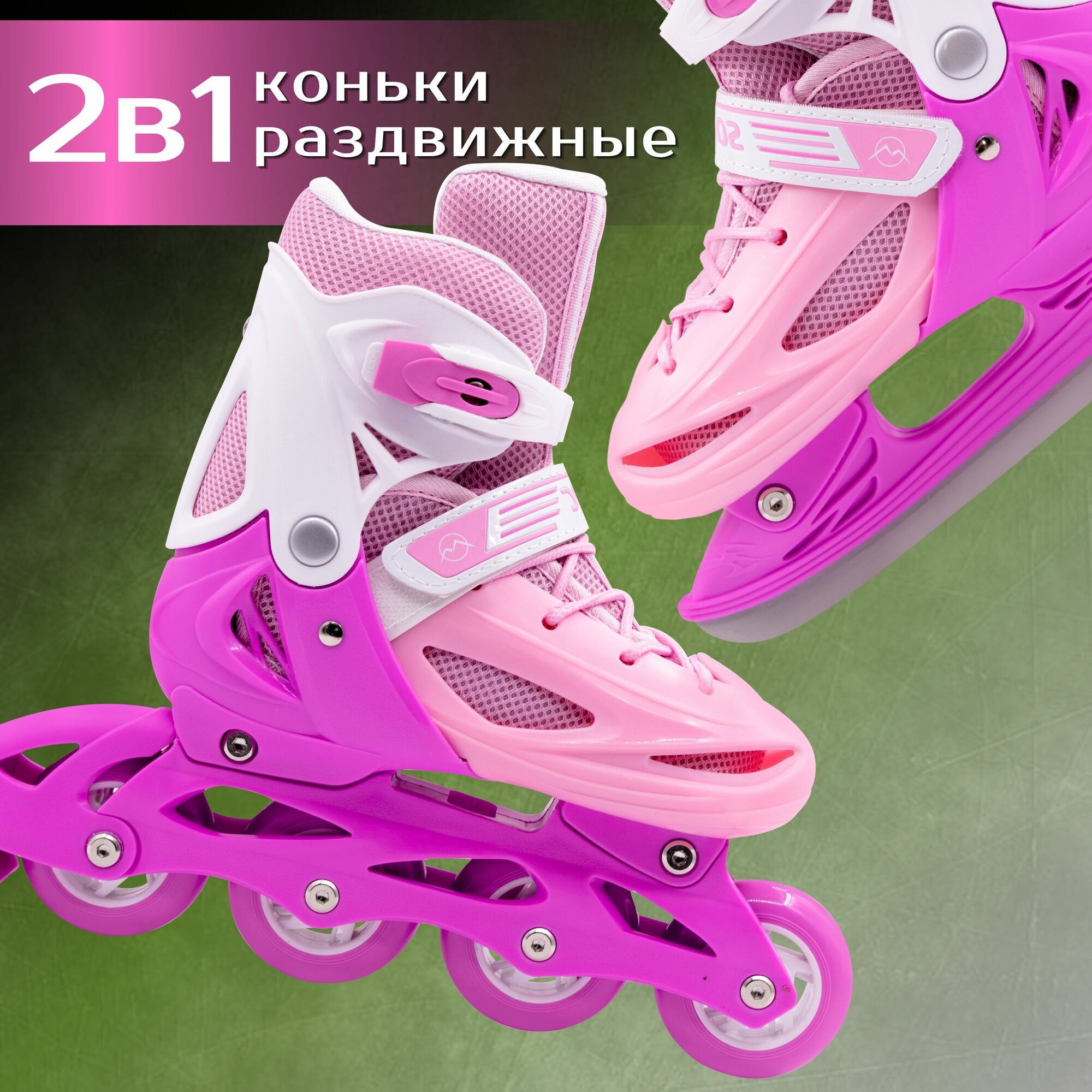 10 цен на Коньки раздвижные роликовые 2 в 1 Virtey Sonic/ Коньки раздвижные ледовые 2 в 1 Virtey Sonic детские р.35-38 розовый
