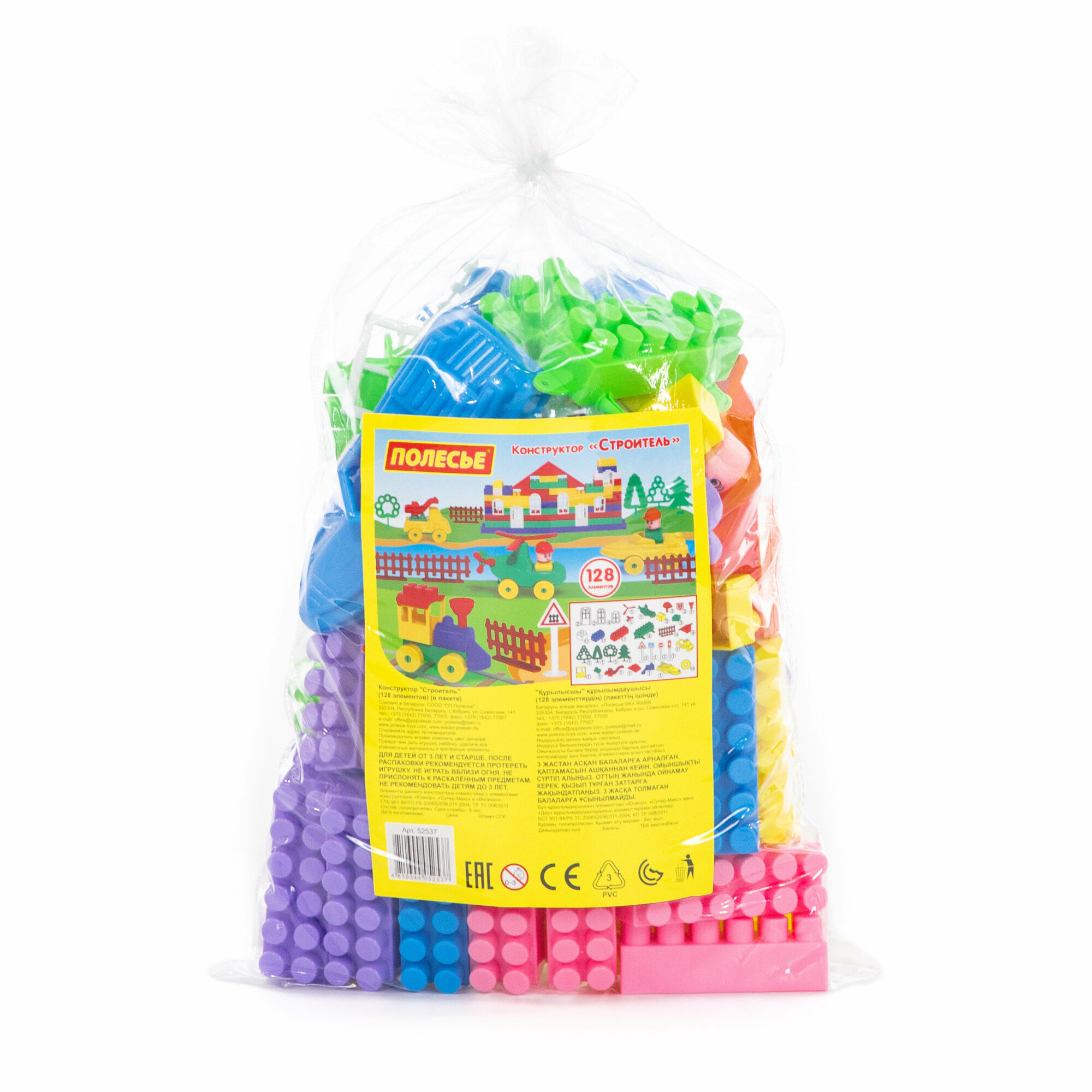 Конструктор Полесье Строитель, 128 элементов в пакете (52537)