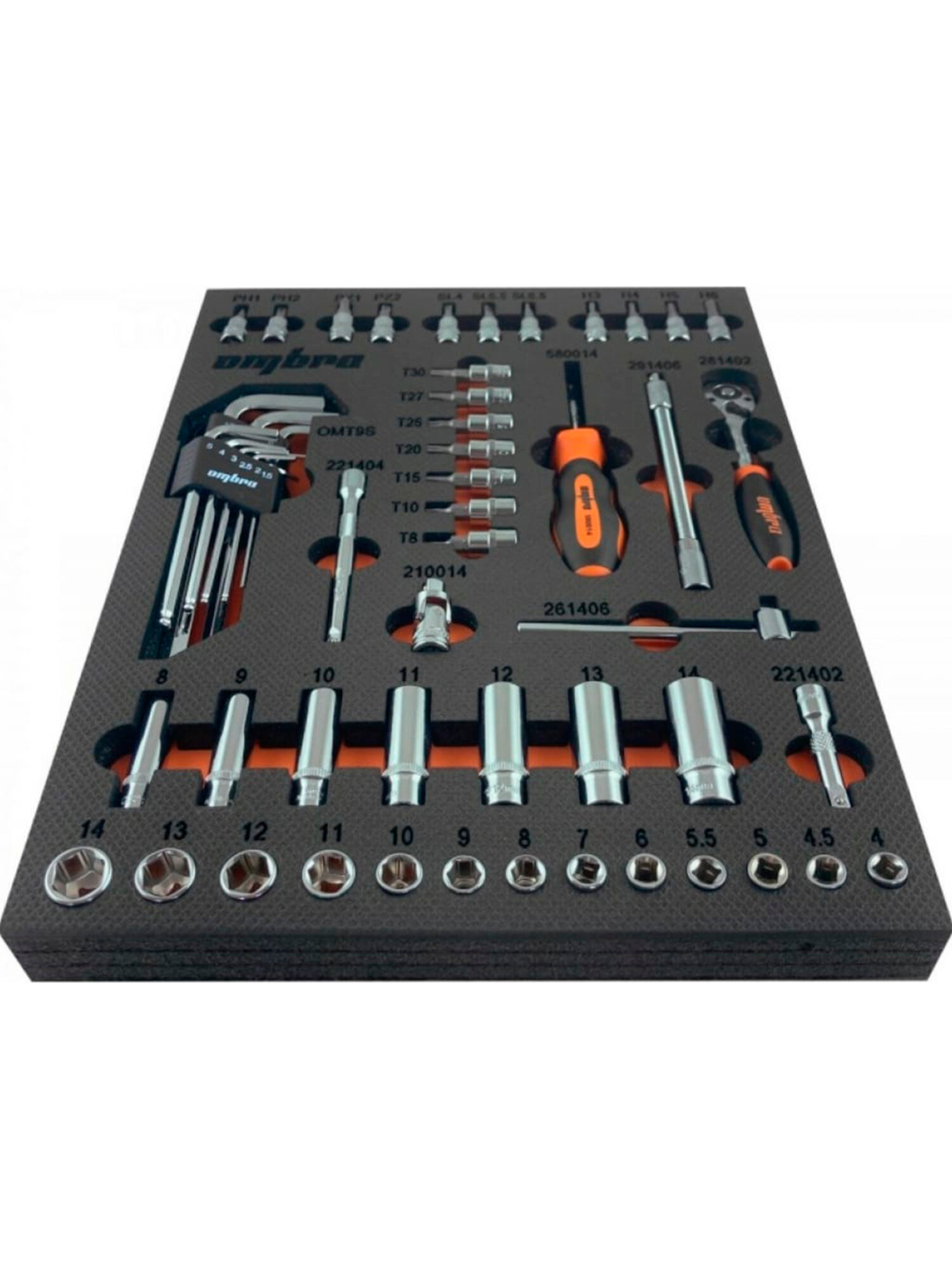 Набор головок торцевых 1/4" DR с аксессуарами в EVA ложементе 280х375 мм, 54 предмета Ombra информация: