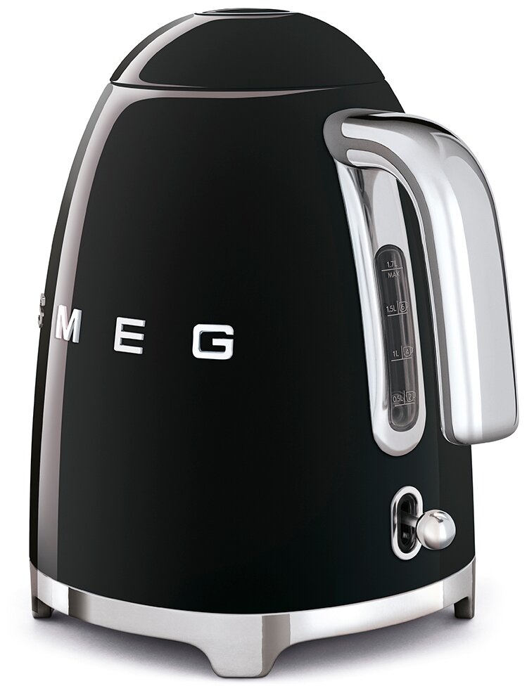 Электрический чайник Smeg Стиль 50-х г., чайник электрический, 1.7 л, 2400 Вт, корпус из нержавеющей стали, черный KLF04BLEU