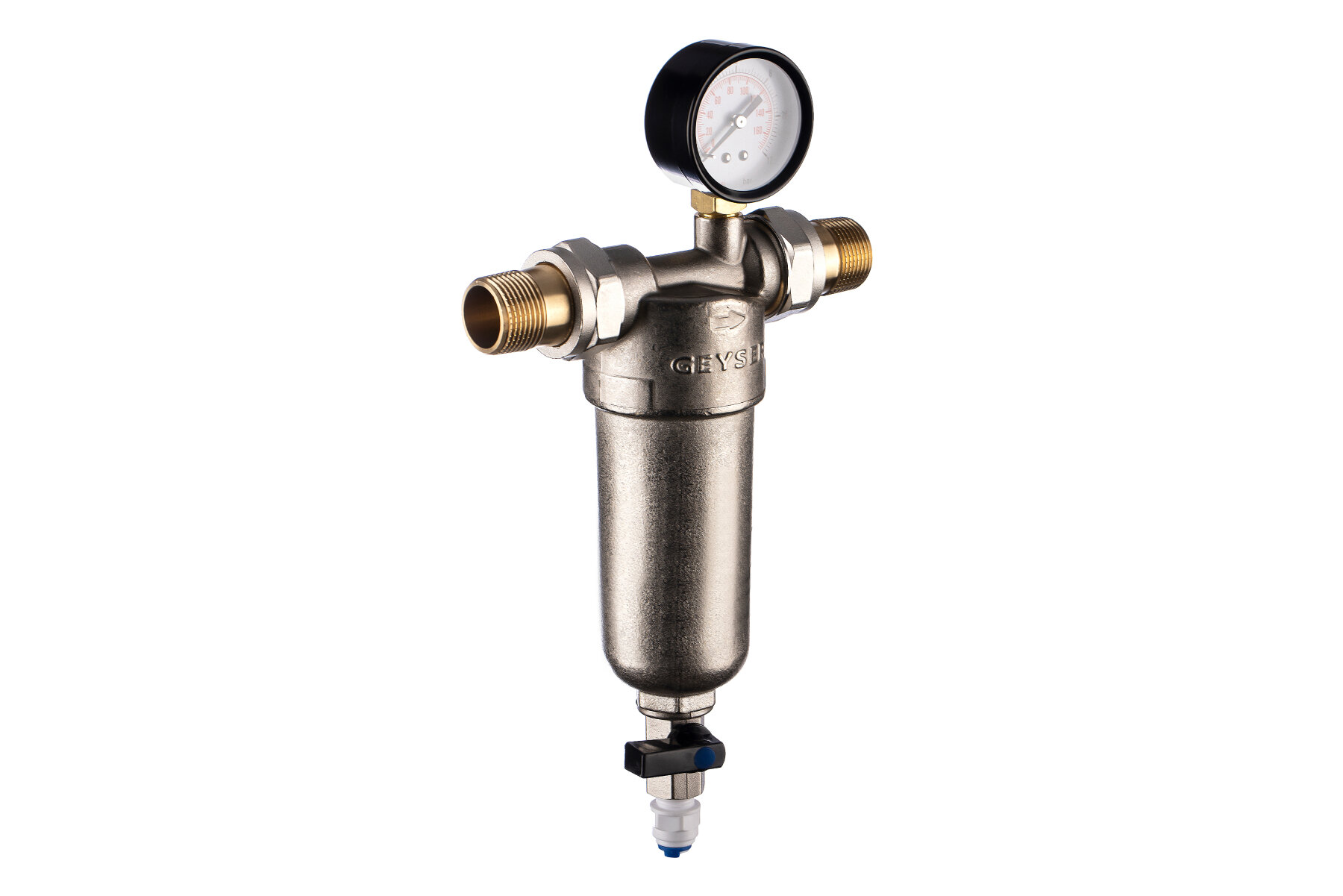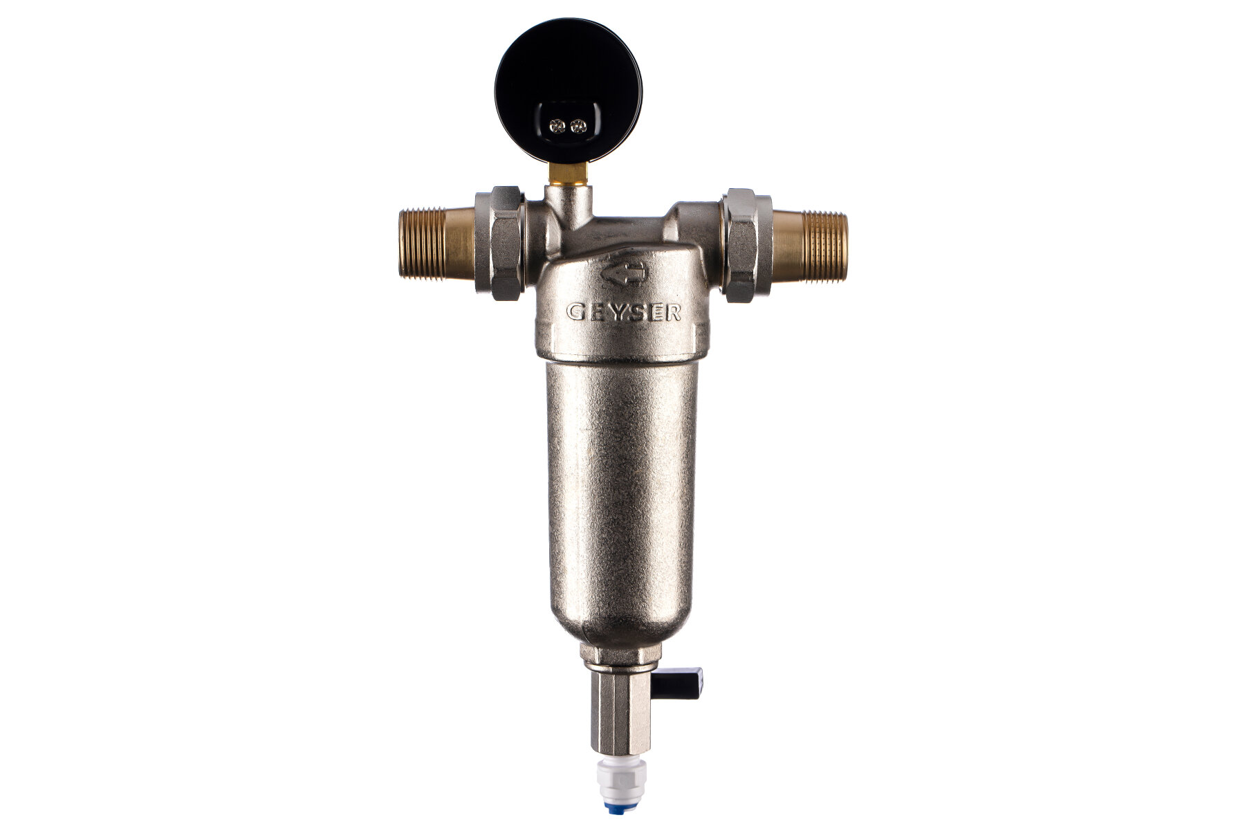 Фильтр Гейзер Бастион 122 с манометром для холодной и горячей воды 3/4"